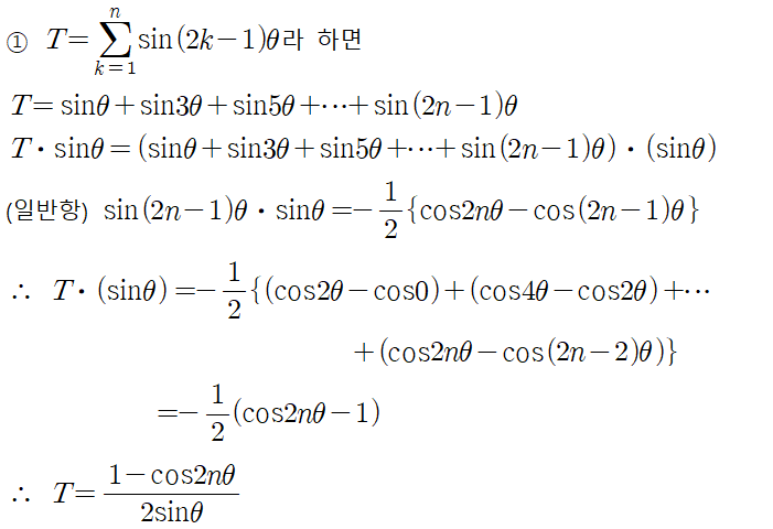 이를 이용하여 이웃한 항을 소거하며 합을 구하면 다음과 같다.